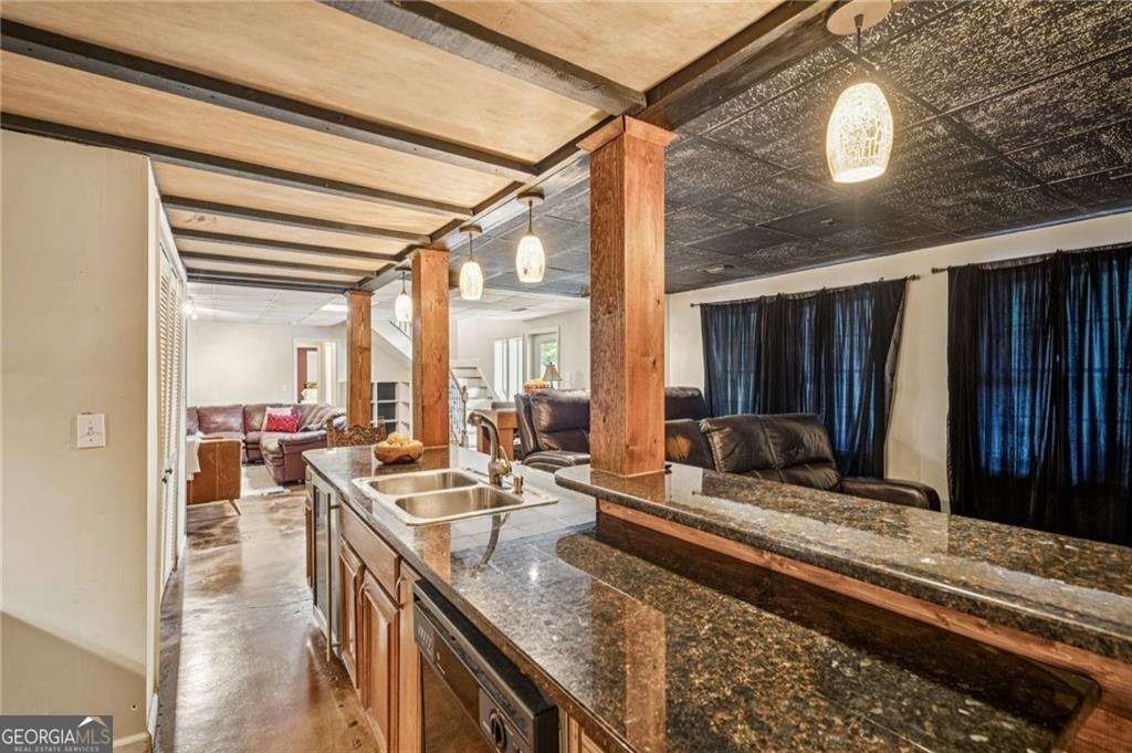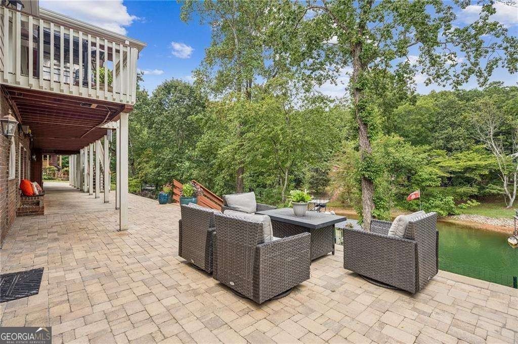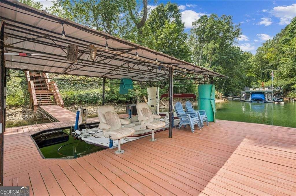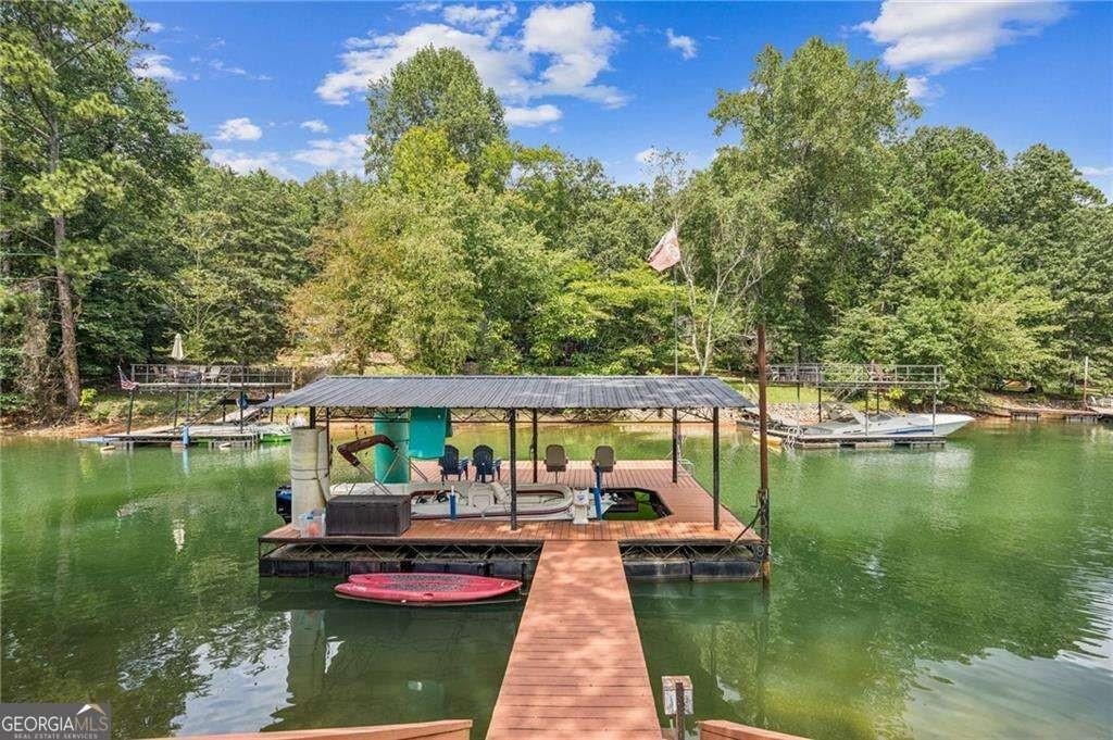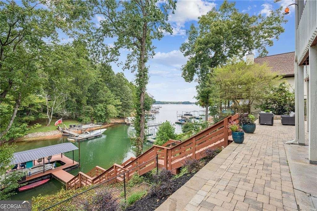 SOUTH LAKE SERENITY!!! RENOVATED AND REMODELED in 2009 and brought up to that current code AND ONLY 5 MINUTES FROM EXIT 14(HWY400) and all Marketplace Boulevard's RESTAURANTS AND SHOPPING! Very easy boat access to the MAIN LAKE, and only 15 MINUTES TO MARGARITAVILLE/LANIER ISLANDS (by boat!) You are also very near to both Habersham Marina AND Baldridge Marina! THIS PICTURE PERFECT SOUTH LAKE SETTING only comes along every now and again...ESPECIALLY with the chance to have your own PRIVATE COVERED DOCK that is literally 48 STEPS FROM YOUR BACK DOOR! Enter the Majestic SOLID WOOD Double Front Doors and be WARMLY WELCOMED by a gorgeous WALL OF GLASS providing YEAR ROUND LAKE VIEWS from the Primary Living Areas (AND the Primary Bedroom as well!). Not only does this home have a total of the 4 BEDROOMS and 3.5 BATHS that you want, but also your own HOME OFFICE, and a full on HOME THEATER set up! We have to mention that there are KITCHENS on both the MAIN LEVEL AND TERRACE LEVEL, and FIREPLACES(wood or gas)AS WELL! And yes, you 'Guest' it!!! A VERY COOL GUEST SUITE/APARTMENT complete with it's own entrance that includes a ROOMY kitchenette, a BEAUTIFUL Murphy bed and very(VERY) FANCY bathroom with a HUGE Soaking Tub! It even has it's own laundry set up for your Guest's convenience! Completing this picture is a FENCED IN BACKYARD area that 'completely' surrounds the entire terrace level! And finally, this home is on CITY WATER AND SEWER, which is rare indeed on Lanier and another great selling point! Make arrangements to come see us soon!!